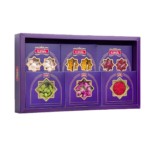 تنوع و انعطافپذیری: از پکهای اقتصادی با بستهبندی پاکتی شیک تا جعبههای لوکس مخمل و چرمی، نامی برای هر بودجه و مناسبتی (هدایای سازمانی، سوغات مشهد، عیدی و شب یلدا) گزینهای خاص دارد.